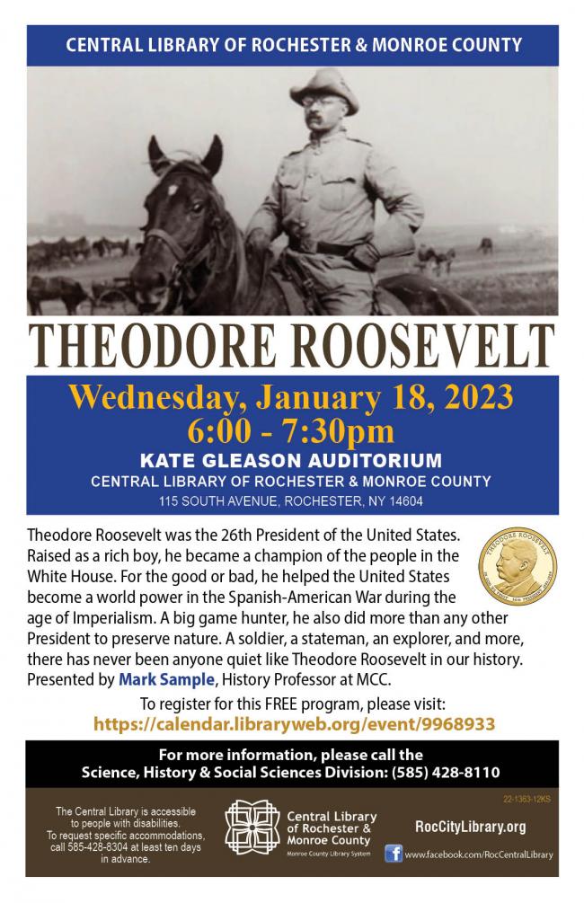 Join us for an in-person program about Theodore Roosevelt, presented by History Professor Mark Sample- in the Kate Gleason Auditorium.